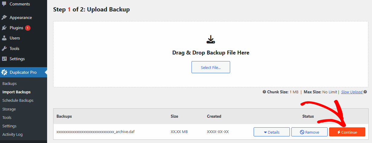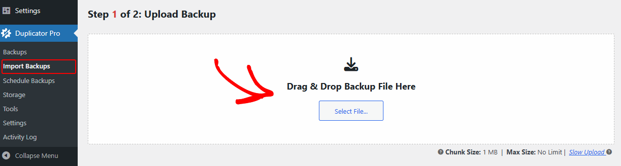 1. Go to Duplicator Pro » Import Backup