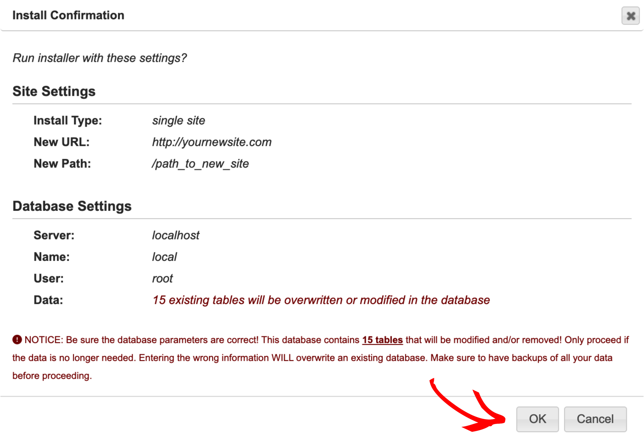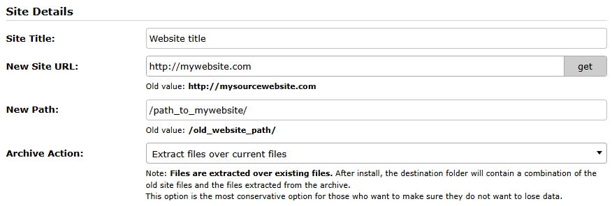 Important Notice (Overwrite Install): Overwriting a website with a backup will clear all existing site data. This process cannot be undone! Please create a backup of the website before performing an overwrite installation.