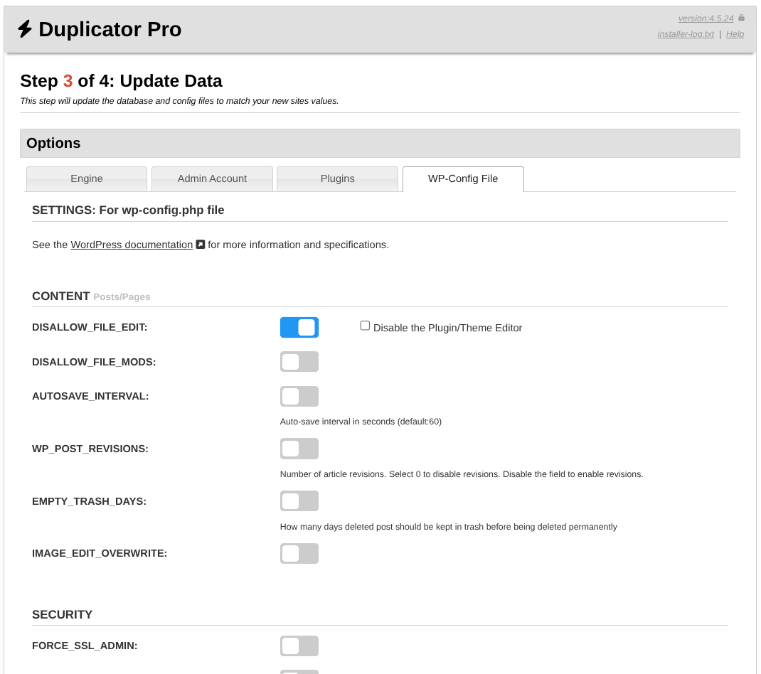 • DISALLOW_FILE_EDIT: (Toggle)